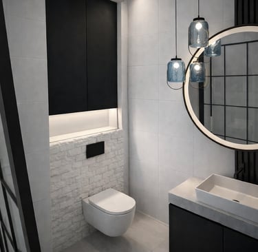 Projekt powstał jako wizualizacja wspierająca proces decyzyjny klientki. W tej realizacji pełniłam rolę doradczą – koncepcja kolorystyczna, wybór kafli oraz armatury były jasno określone przez inwestorkę.